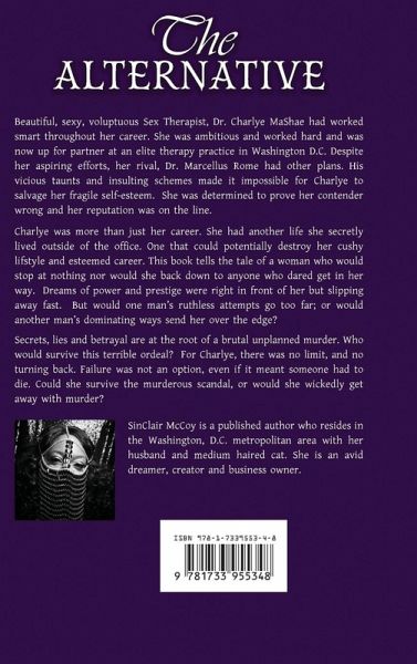 Beautiful, sexy, voluptuous Sex Therapist, Dr. Charlye McShae had worked smart in her career goals. She worked hard and was now up for partner at an elite therapy practice in Washington D.C. Her rival, Dr. Marcel Rome, would make it hard for her by continuously taunting her after many failed attempts to destroy her self-esteem and reputation. Charlye was more than just her career. She had a whole other life that she secretly lived outside of the office; one that could potentially destroy the cushy life and well-respected career that she created for herself and would stop at nothing to get what she wants and be who she desires to be. But when her buttons are pushed and her dreams of power and prestige are being tested, does she go to far? Secrets, lies, and betrayal are at the root of a vicious unplanned murder. Who would survive the terrible ordeal? For Charlye, there was no limit, and nothing or no one would stand in her way. Failure was not an option, even if it meant someone had to die. Could she survive the murderous scandal, or would she get away with murder?