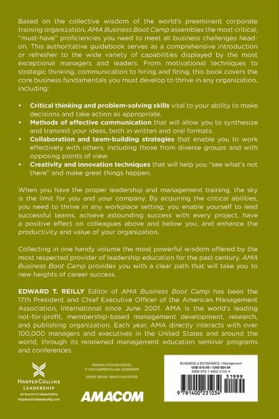 The American Management Association, the preeminent provider of business education worldwide, trains the majority of the Fortune 500 companies in competitive business skills. Covering everything from management and leadership to project management and strategy, AMA Business Boot Camp assembles the association's must-have tools and tips for managers and leaders, including guidance on how to motivate, increase morale, enhance productivity, manage organizational change, improve communication, increase influence, select corporate strategies, conduct effective performance reviews, avoid the pitfalls of intraorganizational politics, and much more. In light of increased globalization and the introduction of ever-advancing technologies, the core principles of effective business leadership are more essential to your professional success now than ever. New and seasoned business professionals alike must constantly sharpen their skills and stay attuned to the latest industry changes if they want to continue casting a strategic vision and inspiring others toward success. This book will help you face those challenges--and uncover new business opportunities along the way.