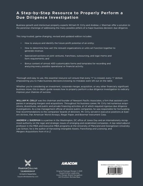 Business growth and intellectual property experts William Crilly and Andrew Sherman offer a solution to the perennial challenge of addressing the many possible pitfalls of a major business decision: due diligence. In The AMA Handbook of Due Diligence, they reveal step-by-step how-tos for using a due diligence investigation to analyze and identify the future profit potential of an entity and determine how well the relevant organizations or units will function together to generate revenue. This long-trusted, game-changing resource includes specialized sections on joint ventures, franchises, outsourcing, and legal memo and form requirements. The revised and updated edition builds on these essential principles with bonus content of almost 400 customizable forms and templates for recording and analyzing every possible operational or financial activity. Thorough and easy to use, this essential resource will ensure that every "t" is crossed, every "i" dotted--and empower you to make business decisions knowing no mistakes were left out on the table.