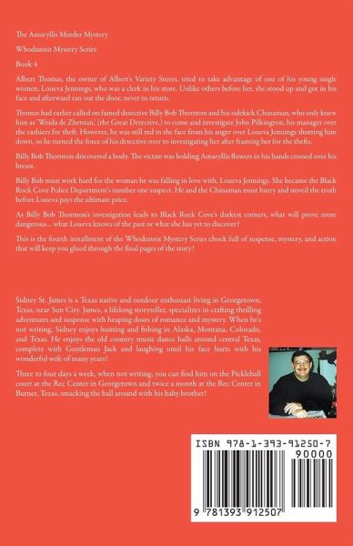 The Amaryllis Murder Mystery Whodunnit Mystery Series Book 4 Albert Thomas, the owner of Albert's Variety Stores, tried to take advantage of one of his young single women, Loueva Jennings, who was a clerk in his store. Unlike others before her, she stood up and got in his face and afterward ran out the door, never to return. Thomas had earlier called on famed detective Billy Bob Thornton and his sidekick Chinaman, who only knew him as 'Weida de Zhentan,' (the Great Detective,) to come and investigate John Pilkington, his manager over the cashiers for theft. However, he was still red in the face from his anger over Loueva Jennings shutting him down, so he turned the force of his detective over to investigating her after framing her for the thefts. However, at the close of the meeting, Billy Bob Thornton and the Chinaman refused to take the case knowing that something was fishy. Later, they paid a visit to Loueva's apartment. Out in the hallway was a man, the Chinaman called Scarface, a convicted felon and protégé of Thomas. Earlier in the day, he had picked him up after an eight-year stay from the state prison. The next day Billy Bob Thornton discovered a body. The victim was holding Amaryllis flowers in his hands crossed over his breast. Billy Bob must work hard for the woman he was falling in love with, Loueva Jennings. She became the Black Rock Cove Police Department's number one suspect. He and the Chinaman must hurry and unveil the truth before Loueva pays the ultimate price. As Billy Bob Thornton's investigation leads to Black Rock Cove's darkest corners, what will prove more dangerous… what Loueva knows of the past or what she has yet to discover? This is the fourth installment of the Whodunnit Mystery Series chock full of suspense, mystery, and action that will keep you glued through the final pages of the story!