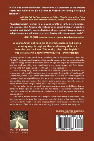 Growing up on a strict Amish farm, rebellious Naomi Swartzentruber covets her "English" neighbors and longs for all the worldly freedoms that her religion forbids. Despite a happy childhood, as Naomi comes of age, she begins to experiment with anything and everything that could have grave consequences, and finds herself craving a life that goes against everything her family believes in. After running away, Naomi embarks on a relentless pursuit of freedom that proves how naive and ill-equipped she is to navigate life outside of "Amishland." Determined, Naomi forges ahead and finds herself in the ultimate taboo playground: Las Vegas, where she quickly learns that her youth, beauty, and innocence are valuable commodities that can make all her wildest dreams come true. Naomi becomes an exotic dancer, then a call girl, in the most sinful city in the world. Yet just as her parents warned, this glamorous world soon leads Naomi down a dark path that begins to consume her, and her desire to experience the forbidden turns into a more sinister addiction that puts her life, and the liberty she so desperately desires, at risk. This erotic memoir reveals what happens when one woman is denied the truth and goes looking for what lies beyond the peaceful mirage of her sheltered Amish farm. Despite the rough terrain she chooses, Naomi never gives up on finding what lies at the end of her path, a life more amazing than she could've ever imagined.