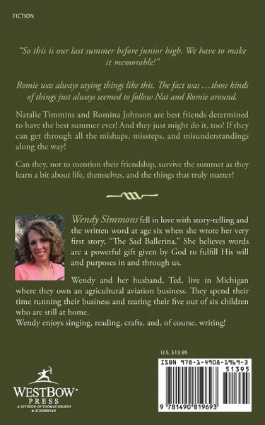 "So this is our last summer before junior high. We have to make it memorable!" Romie was always saying things like this. The fact was ...those kinds of things just always seemed to follow Nat and Romie around. Natalie Timmins and Romina Johnson are best friends determined to have the best summer ever! And they just might do it, too! If they can get through all the mishaps, missteps, and misunderstandings along the way! Can they, not to mention their friendship, survive the summer as they learn a bit about life, themselves, and the things that truly matter?
