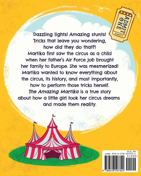 Dazzling lights! Amazing stunts! Tricks that leave you wondering, how did they do that?! Martika first saw the circus as a child when her father's Air Force job brought her family to Europe. She was mesmerized! Martika wanted to know everything about circus, its history, and most importantly, how to perform those tricks herself. The Amazing Martika is a true story about how a little girl took her circus dreams and made them reality.
