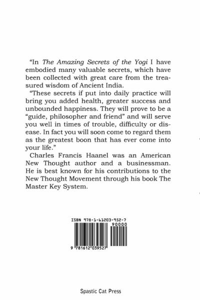 "In The Amazing Secrets of the Yogi I have embodied many valuable secrets, which have been collected with great care from the treasured wisdom of Ancient India. "These secrets if put into daily practice will bring you added health, greater success and unbounded happiness. They will prove to be a "guide, philosopher and friend" and will serve you well in times of trouble, difficulty or disease. In fact you will soon come to regard them as the greatest boon that has ever come into your life." Charles Francis Haanel was an American New Thought author and a businessman. He is best known for his contributions to the New Thought Movement through his book The Master Key System.