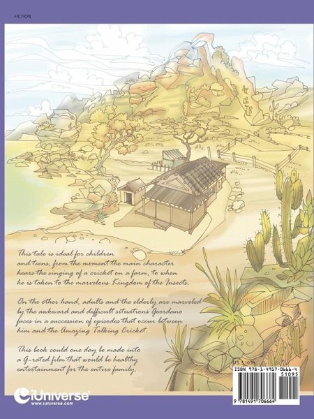 This tale is ideal for children and teens, from the moment the main character hears the singing of a cricket on a farm, to when he is taken to the marvelous Kingdom of the Insects. On the other hand, adults and the elderly are marveled by the awkward and difficult situations Geordano faces in a succession of episodes that occur between him and the Amazing Talking Cricket. This book could one day be made into a G-rated film that would be healthy entertainment for the entire family.
