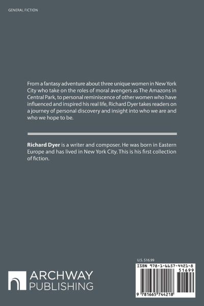 From a fantasy adventure about three unique women in New York City who take on the roles of moral avengers as The Amazons in Central Park, to personal reminiscence of other women who have influenced and inspired his real life, Richard Dyer takes readers on a journey of personal discovery and insight into who we are and who we hope to be.