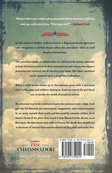 The little girl bled in her father's arms as pursuing soldiers fired. Rounds CRACKED past as Marines at the Embassy gates shouted and her father begged... All the while, her eyes were on me. What would you do? Jackson Ford's a disgraced former governor who recognizes a second chance when the president's chief of staff dangles it. The president needs an ambassador in a third-world nation. Someone to help local tyrants stamp out insurrection while keeping privation and violence out of the election-year news. Ford is a tough idealist, but, this administration makes it clear that they don't want idealism. They expect one thing. Obedience. When a rebel leader shows up outside the embassy gates with a wounded child in his arms and soldiers closing in, Ford can watch the girl bleed out or invoke the wrath of dictators and the president. Ford's decision to provide sanctuary puts the embassy under siege. He and the Embassy Marines are outgunned by the army outside their walls, and betrayed by the enemies within. Ford doesn't know if history will liken their stand to the Alamo or to Bastogne, but he does know they will not betray the ideals that should stir in the heart of anyone who sees the American flag aloft and under fire.