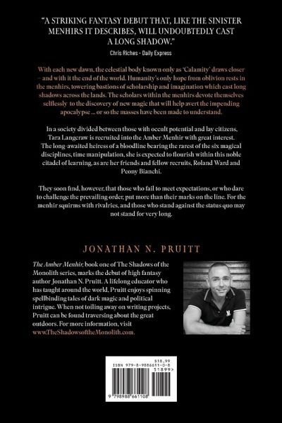 With each new dawn, the celestial body known only as 'Calamity' draws closer - and with it the end of the world. Humanity's only hope from oblivion rests in the menhirs, towering bastions of scholarship and imagination which cast long shadows across the lands. The scholars within the menhirs devote themselves selflessly to the discovery of new magic that will help avert the impending apocalypse ... or so the masses have been made to understand. In a society divided between those with occult potential and lay citizens, Tara Langcraw is recruited into the Amber Menhir with great interest. The long-awaited heiress of a bloodline bearing the rarest of the six magical disciplines, time manipulation, she is expected to flourish within this noble citadel of learning, as are her friends and fellow recruits, Roland Ward and Peony Bianchi. They soon find, however, that those who fail to meet expectations, or who dare to challenge the prevailing order, put more than their marks on the line. For the menhir squirms with rivalries, and those who stand against the status quo may not stand for very long.