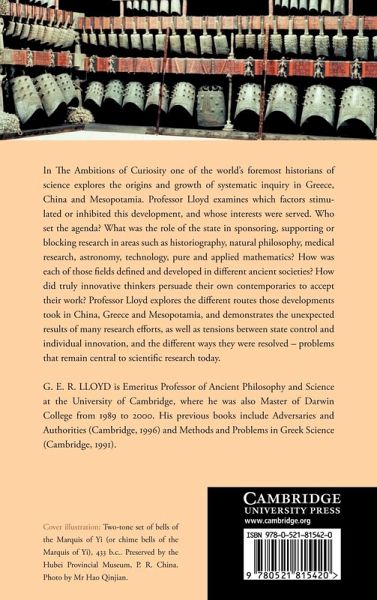 In The Ambitions of Curiosity, first published in 2002, one of the world's foremost philosophers of science explores the origins and growth of systematic inquiry in Greece, China, and Mesopotamia. Professor Lloyd examines which factors stimulated or inhibited this development, and whose interests were served. He asks who set the agenda? What was the role of the state in sponsoring, supporting or blocking research, in such areas as historiography, natural philosophy, medical research, astronomy, technology, pure and applied mathematics? How were each of those fields defined and developed in different ancient societies? How did truly innovative thinkers persuade their own contemporaries to accept their work? Professor Lloyd explores the different routes those developments took in China, Greece and Mesopotamia, and demonstrates the unexpected results of many research efforts, as well as the tensions between state control and individual innovation and the different ways they were resolved - problems that remain central to scientific research today.