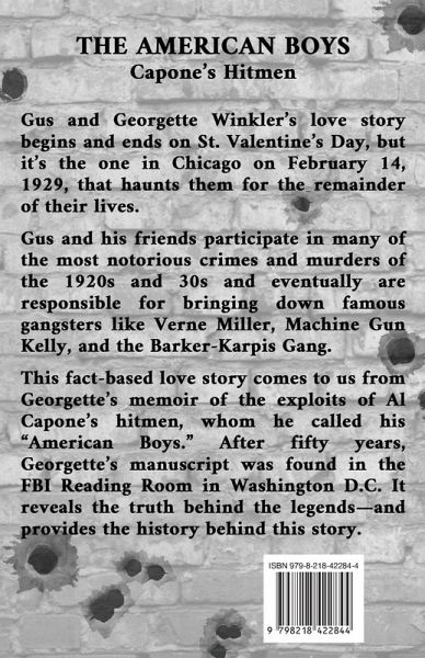 Gus and Georgette Winkler's love story begins and ends on St. Valentine's Day, but it's the one in Chicago on February 14, 1929, that haunts them for the remainder of their lives. Gus and his friends participate in many of the most notorious crimes and murders of the 1920s and 30s and eventually are responsible for bringing down famous gangsters like Verne Miller, Machine Gun Kelly, and the Barker-Karpis Gang. This fact-based love story comes to us from Georgette's memoir of the exploits of Al Capone's hit men, whom he called his "American Boys." After fifty years, Georgette's manuscript was found in the FBI Reading Room in Washington D.C. It reveals the truth behind the legends-and provides the history behind this story.