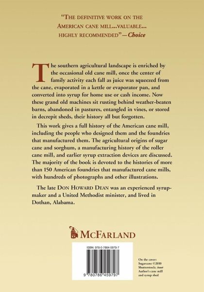 The southern agricultural landscape is enriched by the occasional old cane mill, once the center of family activity each fall as juice was squeezed from the cane, evaporated in a kettle or evaporator pan, and converted into syrup for home use or cash income. Now these grand old machines sit rusting behind weather-beaten barns, abandoned in pastures, entangled in vines, or stored in decrepit sheds, their history all but forgotten. This work gives a full history of the American cane mill, including the people who designed them and the foundries that manufactured them. The agricultural origins of sugar cane and sorghum, a manufacturing history of the roller cane mill, and earlier syrup extraction devices are discussed. The majority of the book is devoted to the histories of more than 150 American foundries that manufactured cane mills, with hundreds of photographs and other illustrations.
