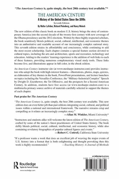 The new edition of this classic text for courses on recent U.S. history covers the story of contemporary America from World War II into the second decade of the twenty-first century with new coverage of the Obama presidency and the 2012 elections. Written by three highly respected scholars, the book seamlessly blends political, social, cultural, intellectual, and economic themes into an authoritative and readable account of our increasingly complex national story. The seventh edition retains its affordability and conciseness while continuing to add the most recent scholarship. Each chapter contains a special feature section devoted to cultural topics including the arts and architecture, sports and recreation, technology and education. Enhancing the students' learning experience is the addition of web links to each of these features to provide complementary visual study tools. An American Century instructor site provides instructors who adopt the book with high interest features--illustrations, photos, maps, quizzes, an elaboration of key themes in the book, PowerPoint presentations, and lecture launchers on topics including the "Military-Industrial Complex" Speech by Dwight D. Eisenhower, the Tet Offensive, and the prospects for a Second American Century. In addition, students have free access to a multimedia primary source archive of materials carefully selected to support the themes of each chapter.