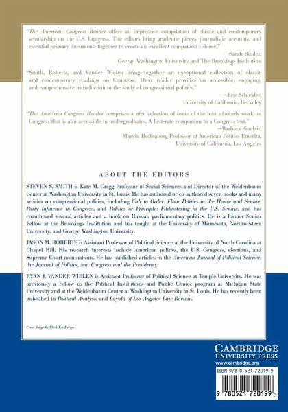 The American Congress Reader provides a supplement to the popular and updated American Congress undergraduate textbook. By the same authors who drew upon Capitol Hill experience and nationally recognized scholarship to present a crisp introduction and analysis of Congress's inner mechanics, the Reader compiles the best relevant scholarship on party and committee systems, leadership, voting, and floor activity to broaden and illuminate the key features of the text.