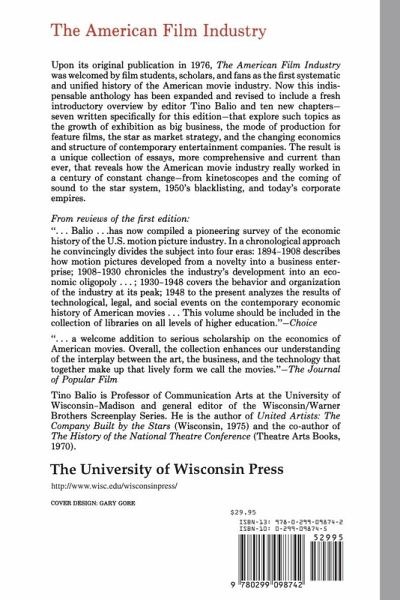 Upon its original publication in 1976, The American Film Industry was welcomed by film students, scholars, and fans as the first systematic and unified history of the American movie industry. Now this indispensible anthology has been expanded and revised to include a fresh introductory overview by editor Tino Balio and ten new chapters that explore such topics as the growth of exhibition as big business, the mode of production for feature films, the star as market strategy, and the changing economics and structure of contemporary entertainment companies. The result is a unique collection of essays, more comprehensive and current than ever, that reveals how the American movie industry really worked in a century of constant change-from kinetoscopes and the coming of sound to the star system, 1950s blacklisting, and today's corporate empires.