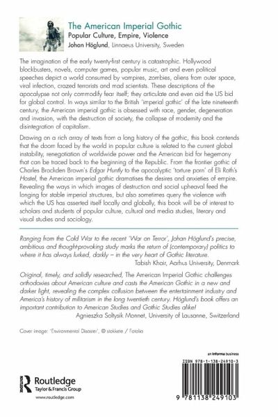 The imagination of the early twenty-first century is catastrophic, with Hollywood blockbusters, novels, computer games, popular music, art and even political speeches all depicting a world consumed by vampires, zombies, meteors, aliens from outer space, disease, crazed terrorists and mad scientists. These frequently gothic descriptions of the apocalypse not only commodify fear itself; they articulate and even help produce imperialism. Building on, and often retelling, the British 'imperial gothic' of the late nineteenth century, the American imperial gothic is obsessed with race, gender, degeneration and invasion, with the destruction of society, the collapse of modernity and the disintegration of capitalism. Drawing on a rich array of texts from a long history of the gothic, this book contends that the doom faced by the world in popular culture is related to the current global instability, renegotiation of worldwide power and the American bid for hegemony that goes back to the beginning of the Republic and which have given shape to the first decade of the millennium. From the frontier gothic of Charles Brockden Brown's Edgar Huntly to the apocalyptic torture porn of Eli Roth's Hostel, the American imperial gothic dramatises the desires and anxieties of empire. Revealing the ways in which images of destruction and social upheaval both query the violence with which the US has asserted itself locally and globally, and feed the longing for stable imperial structures, this book will be of interest to scholars and students of popular culture, cultural and media studies, literary and visual studies and sociology.
