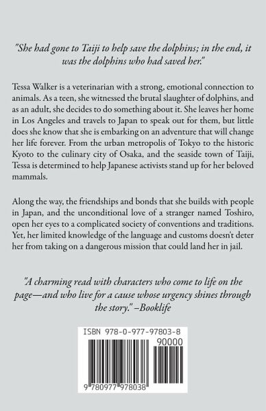 "She had gone to Taiji to help save the dolphins; in the end, it was the dolphins who had saved her." Tessa Walker is a veterinarian with a strong, emotional connection to animals. As a teen, she witnessed the brutal slaughter of dolphins, and as an adult, she decides to do something about it. She leaves her home in Los Angeles and travels to Japan to speak out for them, but little does she know that she is embarking on an adventure that will change her life forever. From the urban metropolis of Tokyo to the historic Kyoto to the culinary city of Osaka, and the seaside town of Taiji, Tessa is determined to help Japanese activists stand up for her beloved mammals. Along the way, the friendships and bonds that she builds with people in Japan, and the unconditional love of a stranger named Toshiro, open her eyes to a complicated society of conventions and traditions. Yet, her limited knowledge of the language and customs doesn't deter her from taking on a dangerous mission that could land her in jail. "A charming read with characters who come to life on the page—and who live for a cause whose urgency shines through the story." –Booklife Review