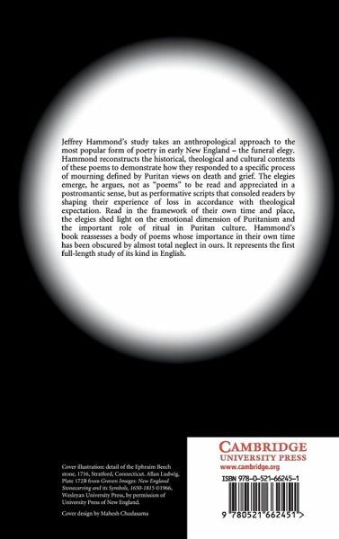 Jeffrey Hammond's study takes an anthropological approach to the most popular form of poetry in early New England - the funeral elegy.