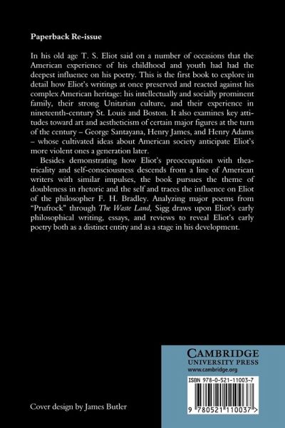 Sigg draws upon Eliot's early philosophical writing, essays and reviews to reveal Eliot's early poetry both as a distinct entity and as a stage in his development.