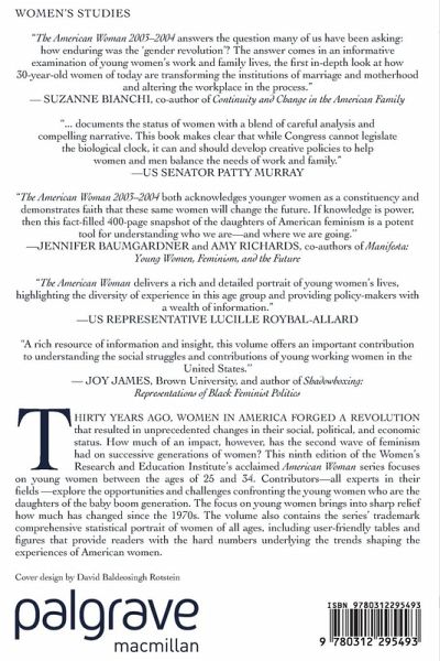 The American Woman is an established, widely respected series on the status of American women, prepared biannually by the Women's Research and Education Institute (WREI). The purpose of the series is to provide an important, convenient, and timely source of accessible and 'user-friendly' information on American women to the media, students and scholars, advocates for women's equity, and policymakers. Each edition of the series focuses on a particular theme, and the ninth edition will address young women between the ages of 25 and 35. Contributors - all experts in the field of women's issues - will explore the opportunities and challenges confronting the young women who are the daughters of the baby boomer generation. A focus on young women will bring into sharp relief how much has changed in the decades since 1960 and how much remains the same. A statistical portrait will accompany the volume, including user-friendly charts and graphs that provide readers with the hard numbers that underlie the trends shaping women's experiences.