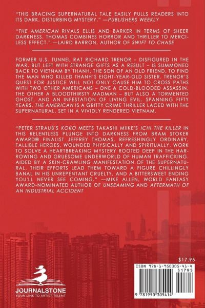 Former US tunnel rat Richard Trenor - disfigured in the war, but left with strange gifts as a result - is summoned back to Vietnam by Thanh, the son of an old friend, to find the man who killed Thanh's eight-year-old sister. Trenor's quest for justice will not only cause him to cross paths with two other Americans - one a cold-blooded assassin, the other a bloodthirsty madman - but also a tormented ghost, and an infestation of living evil. Spanning fifty years, The American is a gritty crime thriller laced with the supernatural, set in a vividly rendered Vietnam.