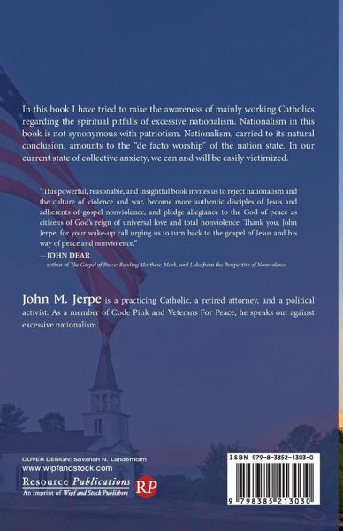 John M. Jerpe is a practicing Catholic, a retired attorney, and a political activist. As a member of Code Pink and Veterans For Peace, he speaks out against excessive nationalism. By extension, he works against what has come to be known as ""a state of permanent warfare."" He sees and speaks out against that network of arms manufacturers who perpetuate the ""permanent warfare"" by literally bribing legislators at our national level, and who have come to be known as the ""military industrial complex."" John sees his Catholic faith as a call to speak out against nationalism so extreme that it approximates idolatry, or what he calls ""the de facto worship of the nation state."" He writes to warn us about the appeal of authoritarian leaders, or demagogues in a time when fascism may be looming in America. Most importantly, he challenges his ""institutional church"" to awaken and to speak out of the danger. This is paramount to saying that the phrase ""God and Country,"" when recklessly uttered, is taken to mean ""God IS Country"" in our psychic life. Equally important is the ""deafening silence"" of the ordained clergy on this vital and timely concern.