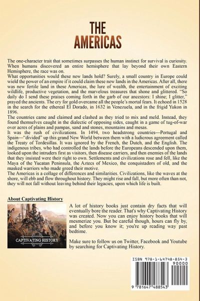 If you want to discover the captivating history of the Americas, then keep reading... The one-character trait that sometimes surpasses the human instinct for survival is curiosity. When humans discovered an entire hemisphere that lay beyond their own Eastern Hemisphere, the race was on. What opportunities would these new lands hold? Surely, a small country in Europe could wield the power of an empire if it could claim these new lands in the Americas. After all, there was new fertile land in these Americas, the lure of wealth, the entertainment of exciting wildlife, productive vegetation, and the marvelous treasures that shone and glittered. The cry for gold overcame all the people's mortal fears. It echoed in 1528 in the search for the ethereal El Dorado, in 1632 in Venezuela, and in the frigid Yukon in 1896. The countries came and claimed and clashed as they tried to mix and meld. Instead, they found themselves caught in the dialectic of opposing sides, caught in a game of tug-of-war over acres of plains and pampas, sand and stones, mountains and mesas. In The Americas: A Captivating Guide to the History of the Continents of North and South America, Starting from the Olmecs through the Maya and Aztecs to European Colonization and the Independence Movements, you will discover topics such asThe Olmecs: The Rubber People (1500-400 BCE) The Maya: The K'iche' People (3000 BCE-1511 CE) The Aztecs (1250-1521 CE) The Andean Civilizations and the Incas South America: Peru, Chile, Brazil, and Venezuela from Pre-Columbian Times through Colonization South America: Argentina, Uruguay, and Paraguay from Pre-Columbian Times through Colonization South American Wars of Independence The Natives in North America (13,000 BCE-1492 CE) Iceland and Greenland The European Colonization of North America, 1492-1733 North American Conflicts, Including America's War for Independence, 1754-1783 North America: Mexico and Canada, 1821-1982 Cuba and the West Indies And much, much more! So if you want to learn more about the Americas, scroll up and click the "add to cart" button!