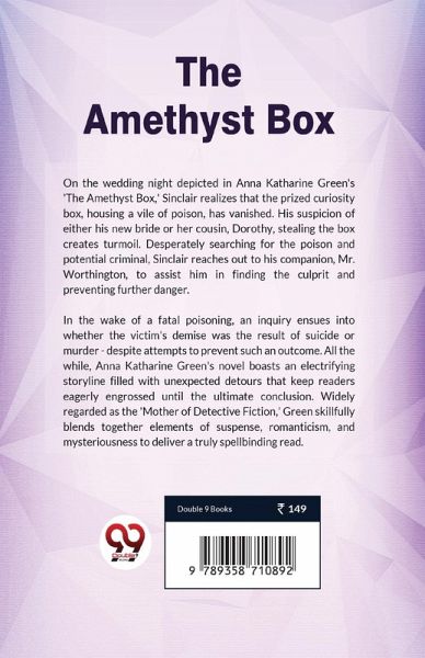 On the wedding night depicted in Anna Katharine Green's 'The Amethyst Box, ' Sinclair realizes that the prized curiosity box, housing a vile of poison, has vanished. His suspicion of either his new bride or her cousin, Dorothy, stealing the box creates turmoil. Desperately searching for the poison and potential criminal, Sinclair reaches out to his companion, Mr. Worthington, to assist him in finding the culprit and preventing further danger. In the wake of a fatal poisoning, an inquiry ensues into whether the victim's demise was the result of suicide or murder - despite attempts to prevent such an outcome. All the while, Anna Katharine Green's novel boasts an electrifying storyline filled with unexpected detours that keep readers eagerly engrossed until the ultimate conclusion. Widely regarded as the 'Mother of Detective Fiction, ' Green skillfully blends together elements of suspense, romanticism, and mysteriousness to deliver a truly spellbinding read.