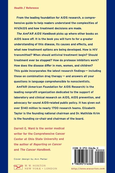From the leading foundation for AIDS research, a comprehensive guide to help readers understand the complexities of HIV/AIDS and provide the latest information on combination therapy. The AmFAR AIDS Handbook picks up where other books on AIDS leave off. It is the book you will turn to for a greater understanding of this disease, its causes and effects, and what new treatment options are being developed. How is HIV transmitted? When should antiviral treatment begin? Should treatment ever be stopped? How do protease inhibitors work? How does the disease differ in men, women, and children? This guide incorporates the latest research findings-including those on combination drug therapy-and answers all your questions in language comprehensible to nonscientists. AmFAR (American Foundation for AIDS Research) is the leading nonprofit organization dedicated to the support of laboratory and clinical research on AIDS, AIDS prevention, and advocacy for sound AIDS-related public policy. It has given out over $140 million to more than 1700 research teams. Elizabeth Taylor is the founding national chairman and Dr. Mathilde Krim is the founding co-chair and chairman of the board.