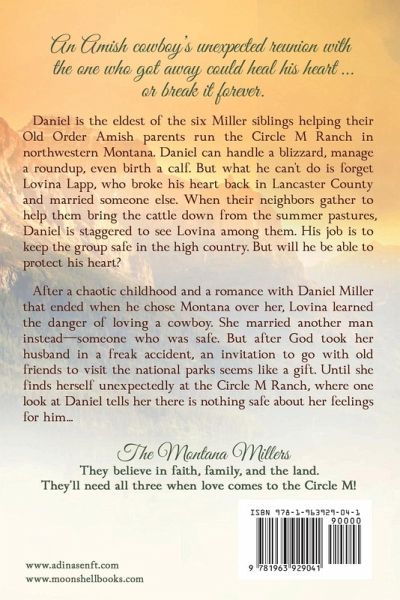 An Amish cowboy's unexpected reunion with the one who got away could heal his heart ... or break it forever. Daniel is the eldest of the six Miller siblings helping their Old Older Amish parents run the Circle M Ranch in northwestern Montana. Daniel can handle a blizzard, manage a roundup, even birth a calf. But what he can't do is forget Lovina Lapp, who broke his heart back in Lancaster County and married someone else. When their neighbors gather to help them bring the cattle down from the summer pastures, Daniel is staggered to see Lovina among them. His job is to keep the group safe in the high country. But will he be able to protect his heart? After a chaotic childhood and a romance with Daniel Miller that ended when he chose Montana over her, Lovina learned the danger of loving a cowboy. She married another man instead-someone who was safe. But after God took her husband in a freak accident, an invitation to go with old friends to visit the national parks seems like a gift. Until she finds herself unexpectedly at the Circle M Ranch, where one look at Daniel tells her there is nothing safe about her feelings for him ... The Montana Millers. They believe in faith, family, and the land. They'll need all three when love comes to the Circle M! The Amish Cowboy is the first novel in the Amish Cowboys of Montana romance series. Though the books that follow can be read as standalones, there is a family thread running through them all. No strong language, just a loving kiss and a guaranteed happily ever after. Enjoy!