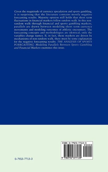 Given the magnitude of currency speculation and sports gambling, it is surprising that the literature contains mostly negative forecasting results. Majority opinion still holds that short term fluctuations in financial markets follow random walk. In this non-random walk through financial and sports gambling markets, parallels are drawn between modeling short term currency movements and modeling outcomes of athletic encounters. The forecasting concepts and methodologies are identical; only the variables change names. If, in fact, these markets are driven by mechanisms of non-random walk, there must be some explanation for the negative forecasting results. The Analysis ofSports Forecasting: Modeling Parallels Between Sports Gambling andFinancial Markets examines this issue.