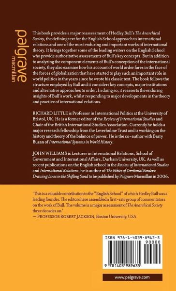 'This is a valuable contribution to the 'English School' of which Hedley Bull was a leading founder. The editors have assembled a first rate group of commentators on the work of Bull. The volume is a major assessment of The Anarchical Society three decades on.' - Professor Robert Jackson, Boston University, USA