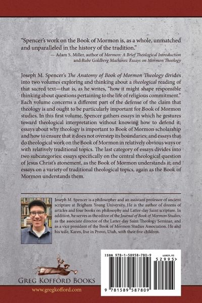 Few scholars of the Book of Mormon have read this volume of scripture as closely and rigorously as Joseph M. Spencer. And of those, none have devoted as much time and effort as he to a theological reading of that sacred text-that is, as Spencer writes, "how it might shape responsible thinking about questions pertaining to the life of religious commitment" (p. 1:173). The Anatomy of Book of Mormon Theology divides into two volumes exploring and thinking about these pertinent questions. Each concerns a different part of the defense of the claim that theology is and ought to be particularly important for Book of Mormon studies. In this first volume, Spencer gathers early essays in which he gestures toward theological interpretation without knowing how to defend it; essays about why theology is important to Book of Mormon scholarship and how to ensure that it does not overstep its boundaries; and essays that do theological work on the Book of Mormon in relatively obvious ways or with relatively traditional topics. The last category of essays divides into two subcategories: essays specifically on the central theological question of Jesus Christ's atonement, as the Book of Mormon understands it; and essays on a variety of traditional theological topics, again as the Book of Mormon understands them.