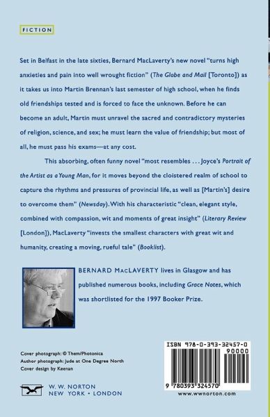 Set in Belfast in the late sixties, Bernard MacLaverty's new novel takes us into Martin Brennan's last semester of high school, when he finds old friendships tested and is forced to face the unknown. Before he can become an adult, Martin must unravel the sacred and contradictory mysteries of religion, science, and sex; he must learn the value of friendship; but most of all he must pass his exams-at any cost. Celebrating the desire to speak and the need to say nothing, The Anatomy School moves from the enforced silence of Martin's Catholic school retreat, through the hilarious tea-and-biscuits repartee of his eccentric elders, to the awkward wit and loose profanity of his two friends-the charismatic Kavanagh and the subversive Blaise Foley.