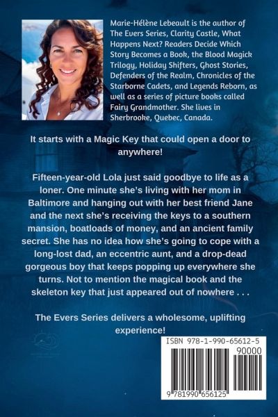 For fans of Stardust and The Golden Compass ... The Evers Series delivers a wholesome, uplifting experience! Fifteen-year-old Lola just said goodbye to life as a loner. One minute she's living with her mom in Baltimore and hanging out with her best friend Jane and the next she's receiving the keys to a southern mansion, boatloads of money, and an ancient family secret. She has no idea how she's going to cope with a long-lost dad, an eccentric aunt, and a drop-dead gorgeous boy that keeps popping up everywhere she turns. Not to mention the magical book and the skeleton key that just appeared out of nowhere . . .