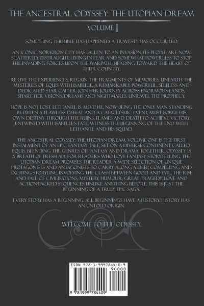 Something terrible has happened. A travesty has occurred. An iconic Norkron City has fallen to an invasion. Its people are now scattered, distraught, living in fear and somewhat powerless to stop the invading forces upon the warpath, heading toward the heart of their country. Re-live the experiences, regain the fragments of memories, unearth the mysteries of Equis with Isabelle, a remarkably powerful, selfless and dedicated Star Caller. Join her journey across enormous lands, share her visions, dreams and nightmares. Unravel the prophecy. Hope is not lost. Lethaniel is alive! He, now being the only man standing between a flawless defeat and a cataclysmic event, must forge his own destiny through the ruins, flames and death to achieve victory. Entwined with Isabelle’s fate, witness the beginning of the end with Lethaniel and his squad. The Ancestral Odyssey: The Utopian Dream, Volume One is the first instalment of an epic fantasy tale, set on a diverse continent called Equis. Blending the genres of fantasy and drama together, Odyssey is a breath of fresh air for readers who love fantasy storytelling. The Utopian Dream promises the reader a wide selection of unique protagonists and antagonists to carry along a deep, compelling and exciting storyline, involving the clash between good and evil, the rise and fall of civilisations, mystery, humour, great tragedy, love and action-packed sequences unlike anything before. This is just the beginning of a truly epic saga. Every story has a beginning. All beginnings have a history. History has an untold origin. Welcome to the Odyssey.