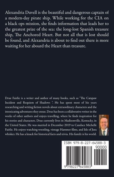 Alexandria Duvell is the beautiful and dangerous captain of a modern-day pirate ship. While working for the CIA on a black ops mission she finds information that leads her to the greatest prize of the sea. The long-lost Spanish treasure ship, The Anchored Heart. But not all that is lost should be found and Alexandria is about to find out that there is more waiting for her aboard the Heart than treasure.
