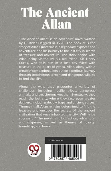 "The Ancient Allan" is an adventure novel written by H. Rider Haggard in 1920. The book tells the story of Allan Quatermain, a legendary explorer and adventurer, and his journey to the lost city in search of treasure and adventure. The story begins with Allan being visited by his old friend, Sir Henry Curtis, who tells him of a lost city filled with treasure in the heart of Africa. Allan, along with a group of companions, sets out on a perilous journey through treacherous terrain and dangerous wildlife to find the city. Along the way, they encounter a variety of challenges, including hostile tribes, dangerous animals, and treacherous weather. Eventually, they reach the lost city, where they face even greater dangers, including deadly traps and ancient curses. Through it all, Allan remains determined to find the treasure and uncover the secrets of the ancient civilization that once inhabited the city. Will he be successful? The novel is full of action, adventure, and suspense, as well as themes of loyalty, friendship, and honor.