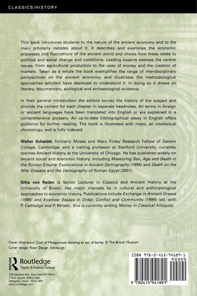The Ancient Economy introduces readers to the nature of economic life in the ancient world, and provides a valuable guide to scholarly debates on the subject. The book describes and examines the economic processes and fluctuations of the ancient world, and shows how these relate to political and social change and conditions. Leading experts address the central issues, from agricultural production to the uses of money and the creation of markets. Taken as a whole the book exemplifies the range of interdisciplinary perspectives on the ancient economy, and illustrates the methodological approaches scholars have deployed to understand it. In doing so it draws on literary, ecological and archaeological evidence.