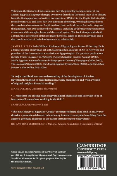 This book, the first of its kind, examines how the phonology and grammar of the ancient Egyptian language changed over more than three thousand years of its history, from the first appearance of written documents, c.3250 BC, to the Coptic dialects of the second century AD and later.