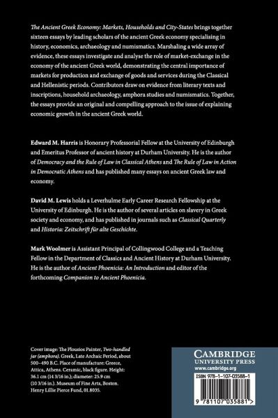 The Ancient Greek Economy: Markets, Households and City-States brings together sixteen essays by leading scholars of the ancient Greek economy specialising in history, economics, archaeology and numismatics. Marshalling a wide array of evidence, these essays investigate and analyse the role of market-exchange in the economy of the ancient Greek world, demonstrating the central importance of markets for production and exchange of goods and services during the Classical and Hellenistic periods. Contributors draw on evidence from literary texts and inscriptions, household archaeology, amphora studies and numismatics. Together, the essays provide an original and compelling approach to the issue of explaining economic growth in the ancient Greek world.