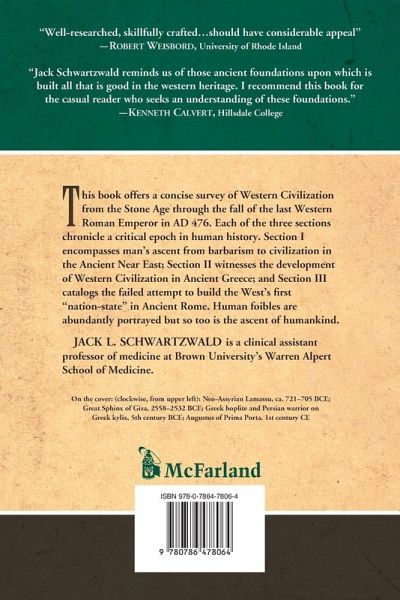 This book offers a concise survey of Western Civilization from the Stone Age through the fall of the last Western Roman Emperor in AD 476. Each of the three sections chronicle a critical epoch in human history. Section I encompasses man's ascent from barbarism to civilization in the Ancient Near East; Section II witnesses the development of Western Civilization in Ancient Greece; and Section III catalogs the failed attempt to build the West's first "nation-state" in Ancient Rome. Human foibles are abundantly portrayed but so too is the ascent of humankind.