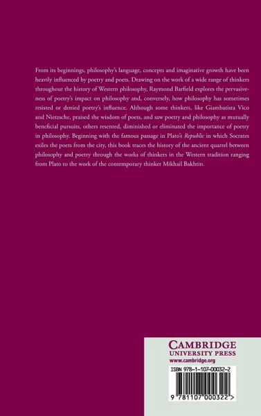 From its beginnings, philosophy's language, concepts and imaginative growth have been heavily influenced by poetry and poets. Drawing on the work of a wide range of thinkers throughout the history of Western philosophy, Raymond Barfield explores the pervasiveness of poetry's impact on philosophy and, conversely, how philosophy has sometimes resisted or denied poetry's influence. Although some thinkers, like Giambatista Vico and Nietzsche, praised the wisdom of poets, and saw poetry and philosophy as mutually beneficial pursuits, others resented, diminished or eliminated the importance of poetry in philosophy. Beginning with the famous passage in Plato's Republic in which Socrates exiles the poets from the city, this book traces the history of the ancient quarrel between philosophy and poetry through the works of thinkers in the Western tradition ranging from Plato to the work of the contemporary thinker Mikhail Bakhtin.