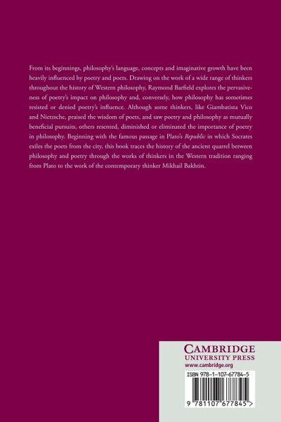 From its beginnings, philosophy's language, concepts and imaginative growth have been heavily influenced by poetry and poets. Drawing on the work of a wide range of thinkers throughout the history of Western philosophy, Raymond Barfield explores the pervasiveness of poetry's impact on philosophy and, conversely, how philosophy has sometimes resisted or denied poetry's influence. Although some thinkers, like Giambatista Vico and Nietzsche, praised the wisdom of poets, and saw poetry and philosophy as mutually beneficial pursuits, others resented, diminished or eliminated the importance of poetry in philosophy. Beginning with the famous passage in Plato's Republic in which Socrates exiles the poets from the city, this book traces the history of the ancient quarrel between philosophy and poetry through the works of thinkers in the Western tradition ranging from Plato to the work of the contemporary thinker Mikhail Bakhtin.