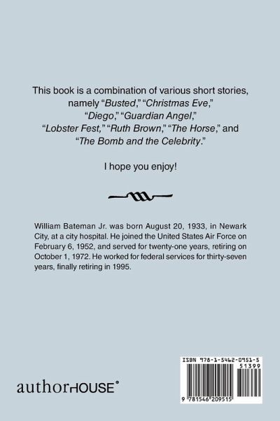 This book is a combination of various short stories, namely ?Busted,? ?Christmas Eve,? ?Diego,? ?Guardian Angel,? ?Lobster Fest,? ?Ruth Brown,? ?The Horse,? and ?The Bomb and the Celebrity.? I hope you enjoy!