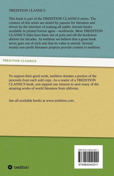 This book is part of the TREDITION CLASSICS series. The creators of this series are united by passion for literature and driven by the intention of making all public domain books available in printed format again - worldwide. At tredition we believe that a great book never goes out of style. Several mostly non-profit literature projects provide content to tredition. To support their good work, tredition donates a portion of the proceeds from each sold copy. As a reader of a TREDITION CLASSICS book, you support our mission to save many of the amazing works of world literature from oblivion.
