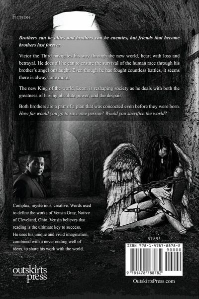 Brothers can be allies and brothers can be enemies, but friends that become brothers last forever. Victor the Third navigates his way through the new world, heart with loss and betrayal. He does all he can to ensure the survival of the human race through his brother's angel onslaught. Even though he has fought countless battles, it seems there is always one more. The new King of the world, Leon, is reshaping society as he deals with both the greatness of having absolute power, and the despair. Both brothers are a part of a plan that was concocted even before they were born. How far would you go to save one person? Would you sacrifice the world?