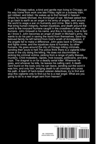 The police think there is a vigilante killer loose in the city doing the killing. He does not discriminate in picking his criminal victims, picking from a range of petty thieves, murders, Child molesters, rapists, mob bosses, politicians, and dirty cops. The dragnet is on for a deadly serial killer. Wherever he goes, and whoever he kills, he leaves his calling card. A death card found on the body only he can leave, sending out the word it was him, and only him, bringing death to all criminals who cross his path. A team of hard-nosed veteran detectives, try to find and stop this vigilante only to find out he is a real angel. What are you going to do to a real angel sent from heaven?