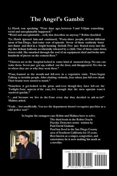 The third book of the Robin Oracle Detective Series. Lt. Hawk presents the psychic duo with their most puzzling case yet. At exactly 9:00pm strange things start happening to people all over San Diego. Four people had seizures and fell into a catatonic state. Three people began hearing voices. Four others died - their autopsies revealed severe brain hemorrhage. Seven suddenly burst into flames along with the rooms they were in. Another five floated into the sky and disappeared. Seven others just walked away from their families and the people who tried to stop them were found sleeping. No one could wake them up. Lt. Hawk's only hope was that Robin and Malissa could solve the strangest case he had ever seen