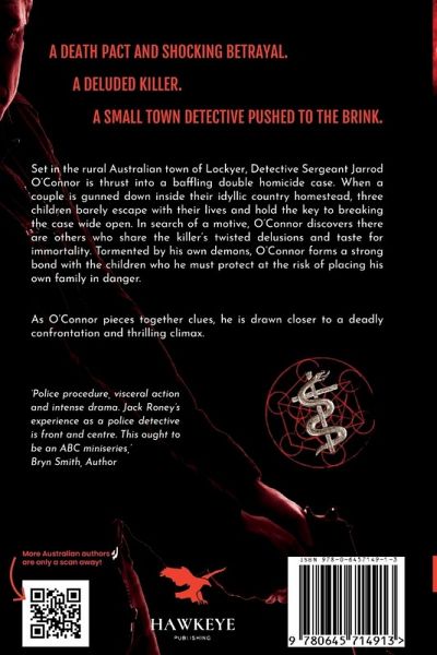 A death pact and shocking betrayal. A deluded killer. A small town detective pushed to the brink. Set in the rural Australian town of Lockyer, Detective Sergeant Jarrod O'Connor is thrust into a baffling double homicide case. When a couple is gunned down inside their idyllic country homestead, three children barely escape with their lives and hold the key to breaking the case wide open. In search of a motive, O'Connor discovers there are others who share the killer's twisted delusions and taste for immortality. Tormented by his own demons, O'Connor forms a strong bond with the children who he must protect at the risk of placing his own family in danger. As O'Connor pieces together clues, he is drawn closer to a deadly confrontation and thrilling climax.