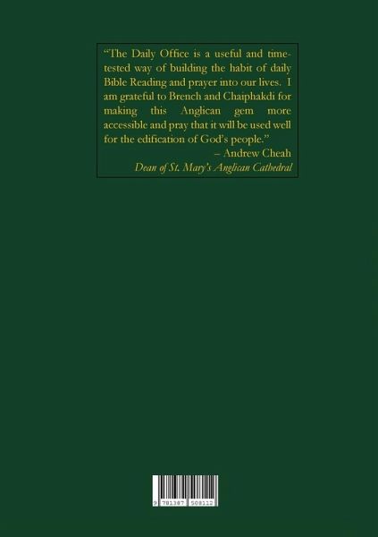 This book is an attempt to help Christians, especially Anglicans, to enrich their spiritual lives with 'the Bible arranged for worship' - the Prayer Book. The Daily Office presented here is structured according to the daily Morning and Evening Prayers of the English Book of Common Prayer (1662) which is the standard for doctrine, discipline, and worship throughout the global Anglican Communion. The Bible verses are largely conformed to the English Standard Version (ESV) while the rest of the text draws heavily from the same standard of clear, modern, English language. - from the Preface